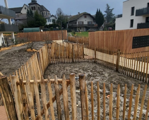 Palissade en bois, panneaux bois et ganivelle